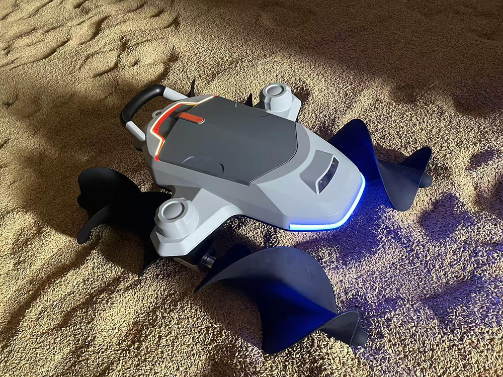 平倉機器人項目總負責人 肖霄:我們將機器人的感知系統,即一款自研的具備210°水平視角和90°垂直視角的超廣角多模態激光雷達安裝于倉內,能實時構建三維糧面地圖,精準識別糧堆高度和位置。它不僅能感知每個糧面糧堆的高度,還能捕捉糧面的細微變化,如入糧時的下沉或凹陷,并可測量糧倉體積。此外,我們此次重點推出的螺旋輪形態機器人,其特制的高葉軸比螺旋輪行走機構能徹底解決傳統履帶/輪式設備在松散糧面上行駛時下陷和滑移的難題,使其能在此類環境下自由行走。